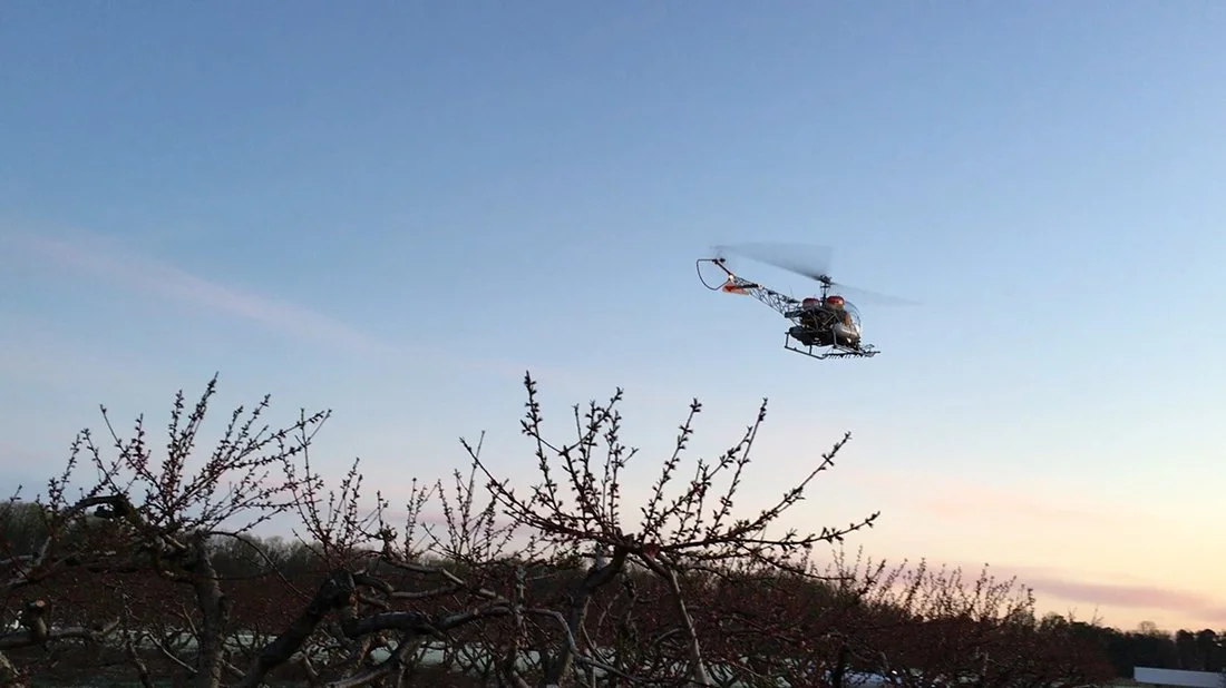 Helicopters, burning hay bales at the ready to help protect young buds and blooms on regional fruit crops